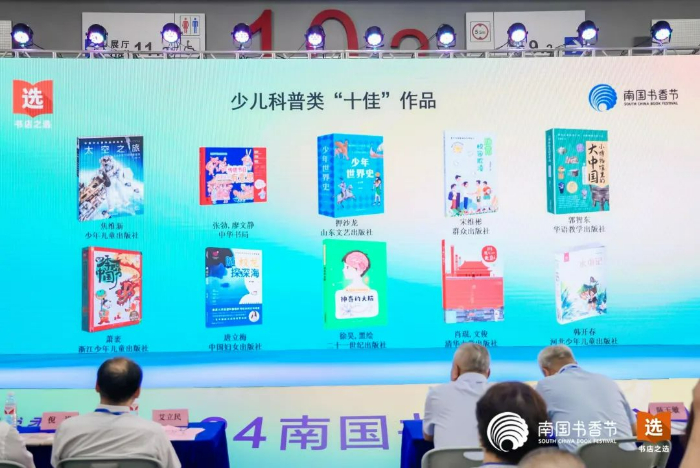 活動現(xiàn)場,嘉賓依次揭曉五大類“十佳”作品入選名單。今年入選的50部作品,延續(xù)了往屆“十佳”作品品質(zhì)閱讀要求,緊貼時勢,包羅萬象,不乏“新質(zhì)生產(chǎn)力”等熱點(diǎn)話題。同時,我們也很欣喜的看到,在兒童文學(xué)、少兒科普領(lǐng)域,涌現(xiàn)出不少新生代原創(chuàng)作者。