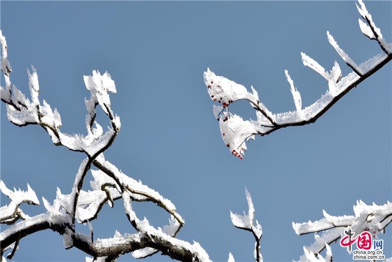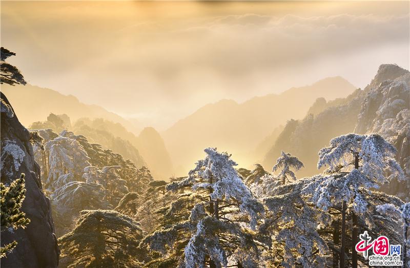 【點睛】2019年最后一天黃山風景區(qū),出現(xiàn)壯觀的日出、霧凇、云海景觀,到處銀妝素裹,冰雕玉砌。
