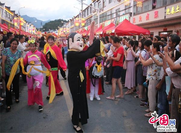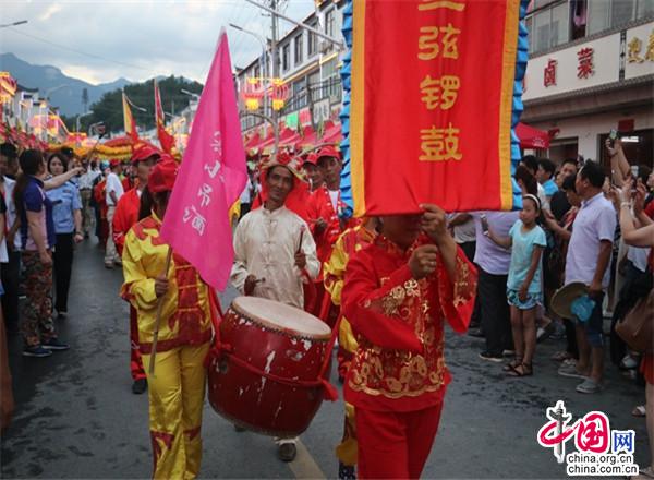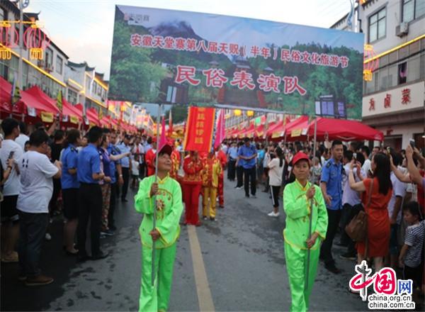 小鎮(zhèn)很熱鬧。小鎮(zhèn)現(xiàn)已入駐了十幾家大型連鎖超市,500多家賓館飯店,300多家購物店。每到雙休日,操著各色口音的四海賓客在街上蹓跶、徜徉,或在超市購物店里選購精美的土特產(chǎn),或在酒店里品嘗著山珍野味,或在KTV里痛快豪嗓,或圍著篝火歡歌勁舞,有的干脆就光著膀子在露天的小吊鍋前劃拳行令,恣意灑脫,好不愜意。每年農(nóng)歷六月初六,天堂寨都要舉辦隆重的天貺節(jié),天堂寨鎮(zhèn)政府門前的一公里主街道兩邊擺起了長龍似的紅色帳篷,“百家吊鍋宴”成為中外游客免費(fèi)品嘗天堂寨美食的饕餮盛宴。人們一邊喝著小吊美酒,吃著山珍美味,一邊欣賞著穿街而過的威風(fēng)鑼鼓、騰龍舞獅、儺戲花船、獨(dú)輪推美女、花棍打癡郎等不斷推陳出新的民俗風(fēng)情表演。酒足飯飽之后,再到政府廣場(chǎng)觀看精彩紛呈的文藝節(jié)目。一時(shí)間,人山人海,把一個(gè)千米“長街”擠得水泄不通;歡聲笑語,把一個(gè)深山小鎮(zhèn)匯成了歡樂的海洋……