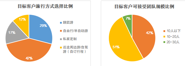 針對近五年連續(xù)兩次以上選擇跟團游/私家定制的客戶,我們就“團隊規(guī)模”這一問題安排專屬旅行顧問進行二次調(diào)研。大部分客戶都表示,“帶老人和孩子出去玩,人少點兒大家能互相體諒”、“出去一趟不容易,人少點兒導(dǎo)游講的細致,也能多提問”。相關(guān)數(shù)據(jù)顯示,選擇“10人以下”的客戶占比42%,選擇“10-20人”的客戶占比51%,二者總和超過九成。由此可見,高品質(zhì)、深度游的“精致小團”將更受青睞。