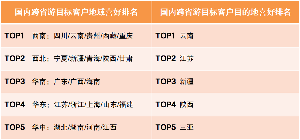 國內(nèi)跨省游目標(biāo)客戶消費偏好