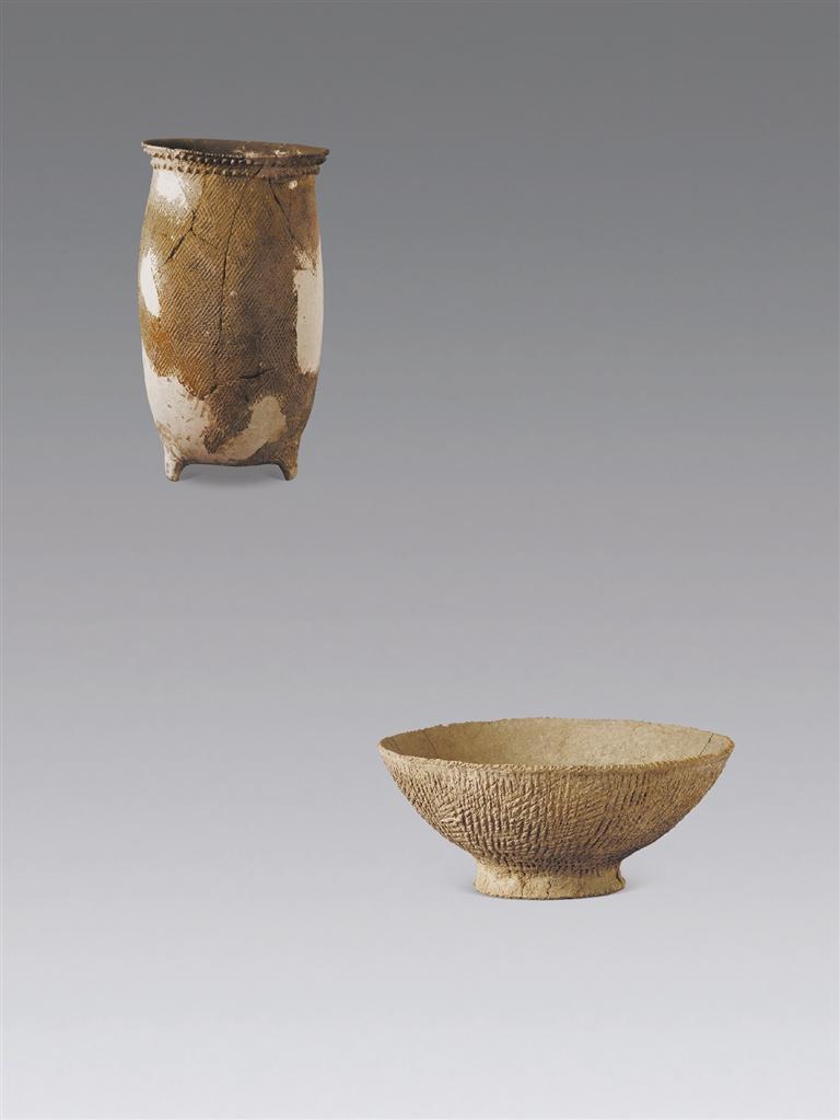 繩紋深腹罐 繩紋圈足紅陶碗