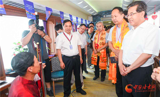 專列到達(dá)西安南站后,陜西省文旅廳及文旅相關(guān)部門(mén)對(duì)“環(huán)西部火車游”專列的到來(lái)表示熱烈的歡迎,陜西省文旅廳負(fù)責(zé)人在甘肅省委宣傳部副部長(zhǎng)、省文旅廳黨組書(shū)記、廳長(zhǎng)陳衛(wèi)中和武威市文體廣電和旅游局負(fù)責(zé)人的陪同下參觀了“環(huán)西部火車游”武威館,并欣賞了國(guó)家級(jí)非遺項(xiàng)目“涼州賢孝”表演。