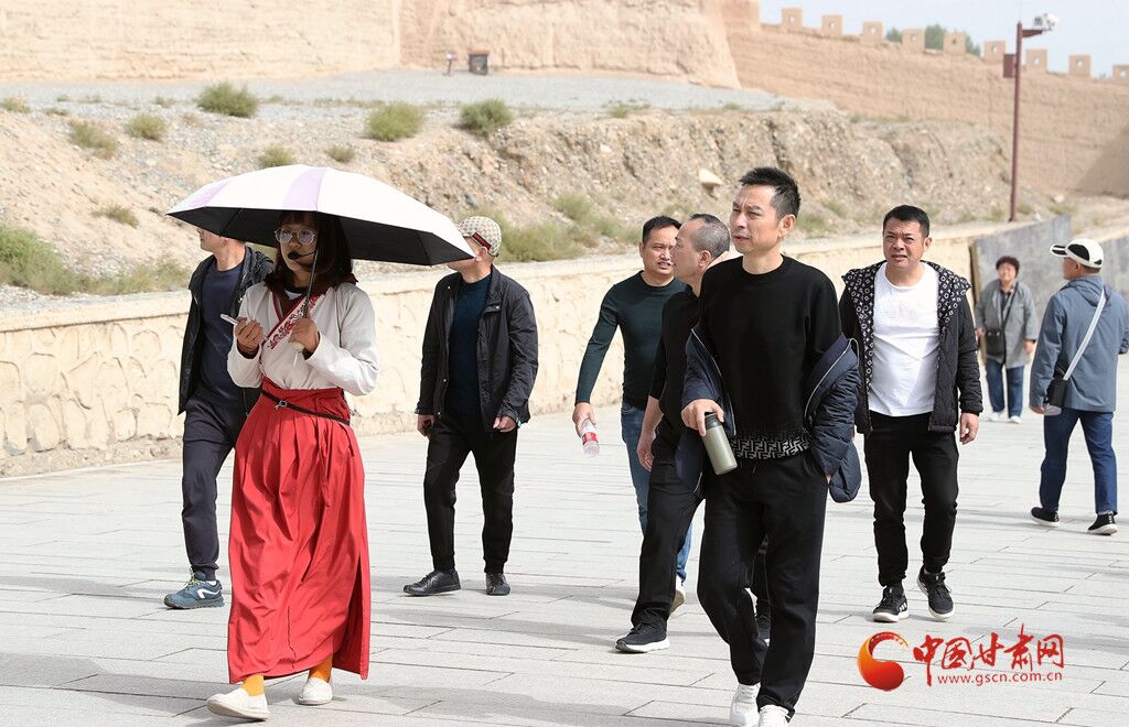 講解員帶領(lǐng)游客體驗(yàn)嘉峪關(guān)關(guān)城