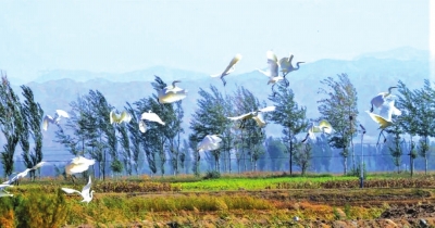 秋日的白銀天高云淡,風(fēng)輕氣爽。隨著一年的稻田收割,成群的白鷺和野鴨等鳥(niǎo)類(lèi)棲息在景泰縣五佛鄉(xiāng)成片的稻田、魚(yú)塘附近,或低空飛翔,或嬉戲覓食,形成一幅自然和諧的美麗畫(huà)卷?!?/p>