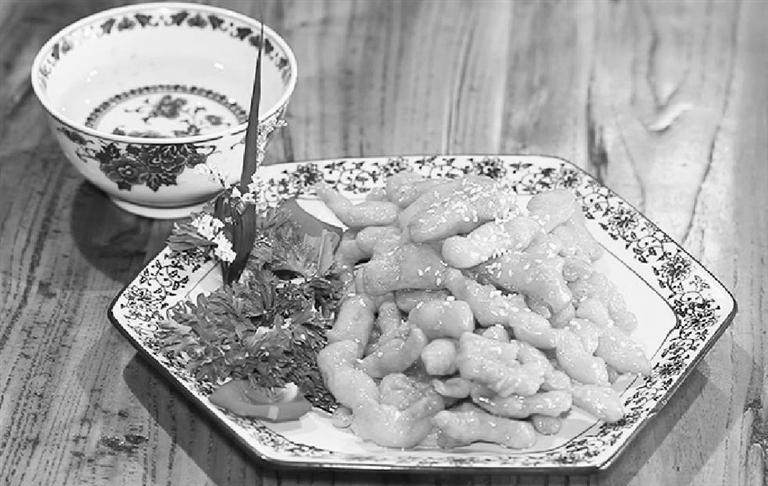 這道菜一端上來,完全是糖醋里脊的扮相,實(shí)際上它是一道甜甜蜜蜜的面食。馉子,這個(gè)詞我也是第一次見,翻閱詞條,發(fā)現(xiàn)它在古時(shí)指的就是一種圓形、有餡、用油煎或水煮的面食。
