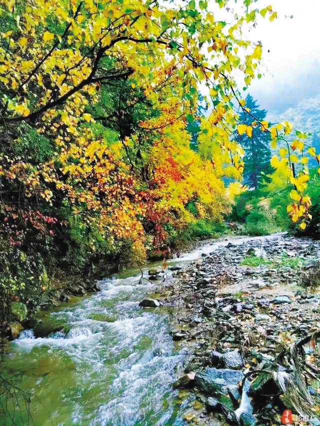 各種顏色的樹(shù)葉交織在一起,紅的、黃的、綠的,波濤一樣奔涌、撞擊乃至匯集,就像一幅丹青妙手精心暈染、調(diào)色的畫(huà)卷。