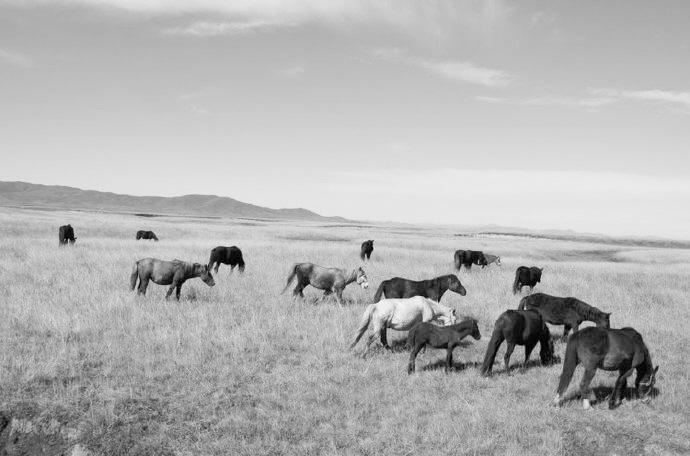 馬兒,似乎不再是草原的寵兒了。我們開(kāi)車向草原深處漫溯,行進(jìn)了三四公里,終于看到路邊有十幾匹馬組成的馬群。這些河曲馬儀態(tài)優(yōu)美,安靜自在。