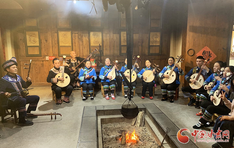 民間藝人在恩施土家女兒城景區(qū)內(nèi)演唱土家小曲