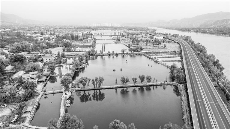 在永靖縣城,沿新修的濱河路西行,一路上芳草茵茵、楊柳依依,心曠神怡。這里是鹽鍋峽水庫的上游,水面寬闊,水速平穩(wěn),形成了許多池塘。碧水映襯著蘆葦、荷葉,遠山相依著藍天、白云,風光秀麗、景色宜人,是假期休閑的好去處。