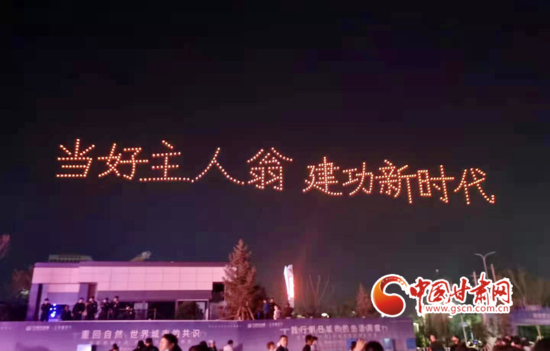 活動現(xiàn)場,千架無人機編隊以天空為幕,以“熒光”為筆,在金城上空分別繪就“慶祝中國共產黨成立100周年”“蘭州鐵橋”“奧體中心”等數(shù)幅壯美畫面,集中反映近年來蘭州市在經濟社會領域取得的成就。