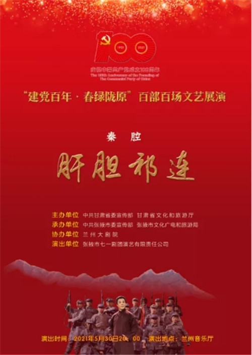 中國(guó)甘肅網(wǎng)5月28日訊(本網(wǎng)記者 宋芳科)5月30日晚,剛剛斬獲第六屆甘肅戲劇紅梅獎(jiǎng)大賽“紅梅劇目獎(jiǎng)”第一名的好成績(jī)的秦腔戲《肝膽祁連》,將在蘭州音樂(lè)廳精彩上演?!陡文懫钸B》以真實(shí)的歷史故事改編,講述了民主人士高金城營(yíng)救紅西路軍戰(zhàn)士的感人故事。屆時(shí),中國(guó)甘肅網(wǎng)將現(xiàn)場(chǎng)直播,歡迎廣大網(wǎng)友點(diǎn)擊進(jìn)入直播間,重溫一段波瀾壯闊而又感人至深的歷史,一起向祁連英魂高金城致敬。