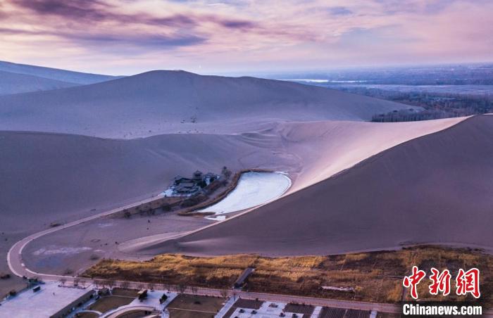 近日,甘肅敦煌發(fā)布了冬春旅游季產(chǎn)品和優(yōu)惠政策引客錯峰出游。圖為夕陽西下的鳴沙山月牙泉景色如畫。 王斌銀 攝