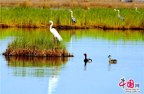 很多鳥類對生存區(qū)域極為挑剔,環(huán)境稍不如意,便會另覓佳處。這里水質(zhì)清冽,空氣純凈,湖草肥美,魚食豐盛,正是很多鳥類遠(yuǎn)途中的理想家園或行途驛站。據(jù)悉,全球九條候鳥遷徙路線中有三條路過中國,其中有兩條遷徙路線在寧夏重疊,沙湖以其良好的自然生態(tài)環(huán)境,為眾多候鳥過境寧夏時提供了重要棲息繁衍地。