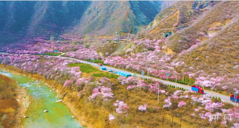 崇信縣峽門附近山上桃花盛開 (央廣網發(fā) 孫淑霞 攝)