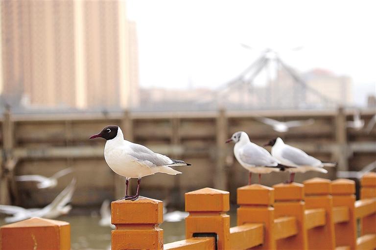 春日的大夏河畔,成群結隊的紅嘴鷗或在水面覓食嬉戲,或在棧道小憩,與碧水藍天構成了一道可愛靈動的風景線。