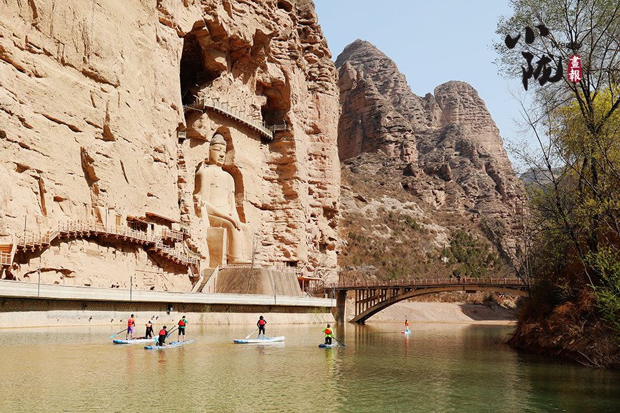 清明前后,炳靈湖水位上漲,寺溝峽谷碧水蕩漾,垂柳依依,景色宜人,槳板愛(ài)好者和游客在這里泛舟,以更輕盈的方式邂逅世界文化遺產(chǎn),摩崖大佛、奇峰赤壁、碧水垂柳,構(gòu)成了一幅幅絕美的畫(huà)圖。