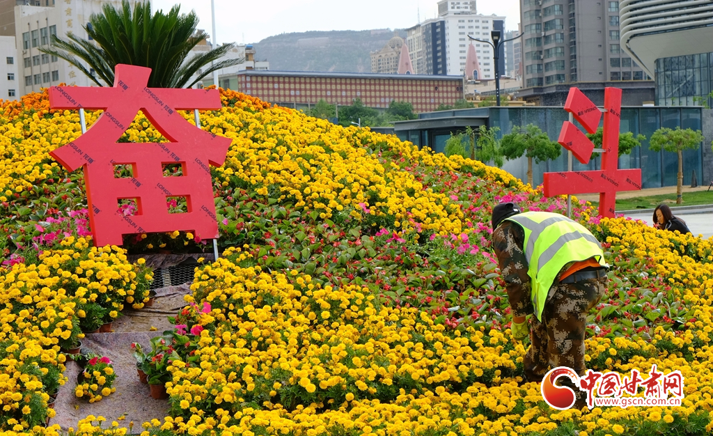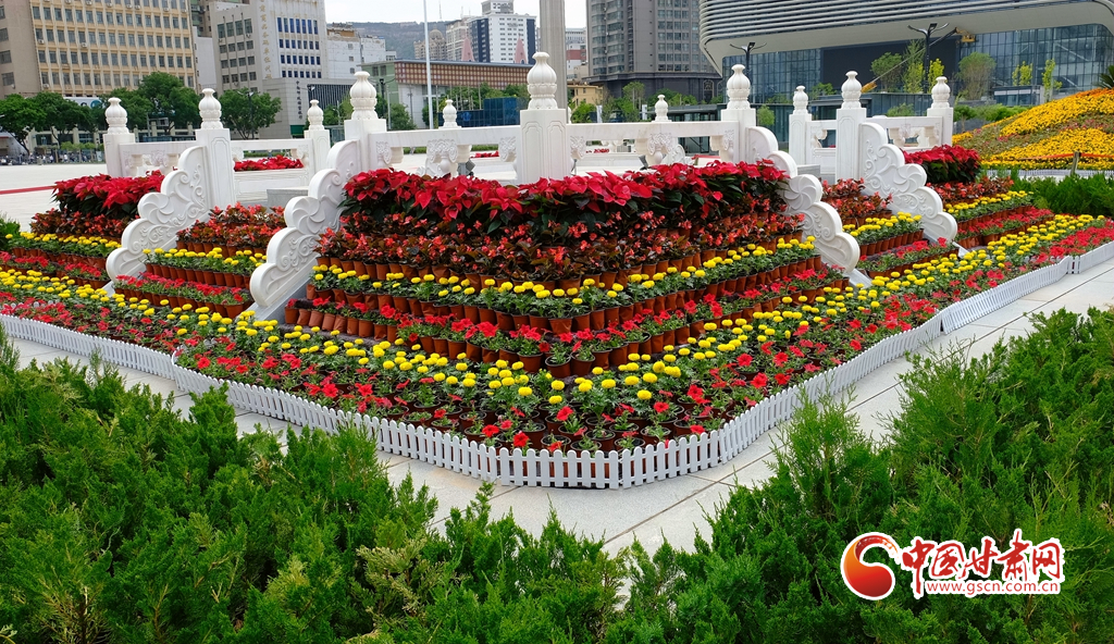 蘭州市東方紅廣場(chǎng)全新的花壇喜迎省第十四次黨代會(huì)