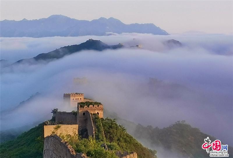 【點(diǎn)睛】5日清晨,一場聲勢浩大鋪天蓋地的云海,在金山嶺長城激情奔涌。升騰的云霧中,蜿蜒的長城似巨龍盤踞在崇山峻嶺,時隱時現(xiàn),氣勢磅礴,尤為壯觀。避暑勝地金山嶺長城的云海季越發(fā)迷人的展現(xiàn)開來......
