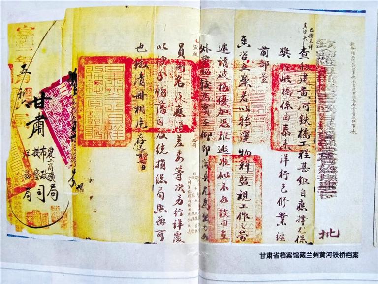 在古金城蘭州架設(shè)橫跨于黃河南北兩岸的鐵橋,曾是左宗棠的夢想,只因當(dāng)時(shí)洋商索價(jià)過高而作罷。30年后,正值清末實(shí)行新政,黃河鐵橋在陜甘總督升允和彭英甲的任上創(chuàng)修成功。建橋過程慘淡經(jīng)營,艱苦備至,已人所共知。好在建設(shè)黃河鐵橋形成的檔案,歸檔于甘肅農(nóng)工商礦總局,沒有存于當(dāng)時(shí)的布政使司,幸運(yùn)地躲過了民國二年那一劫。甘肅農(nóng)工商礦總局后更名為甘肅省署實(shí)業(yè)廳,民國十六年(1927年)甘肅省政府改實(shí)業(yè)廳為建設(shè)廳,這些檔案存于建設(shè)廳。1949年7月,國民黨甘肅省政府逃離前發(fā)出緊急命令:“轉(zhuǎn)移前將政府檔案做緊急處理”,重要檔案進(jìn)行“焚毀、埋藏、轉(zhuǎn)移”,次要檔案“從速列冊銷毀”。只因倉皇逃離,未來得及銷毀。人民解放軍從解放蘭州的戰(zhàn)火中把包括鐵橋檔案在內(nèi)的許多檔案搶救出來,由蘭州軍管會(huì)接管。2002年,《蘭州黃河鐵橋檔案》入選首批《中國檔案文獻(xiàn)遺產(chǎn)名錄》。