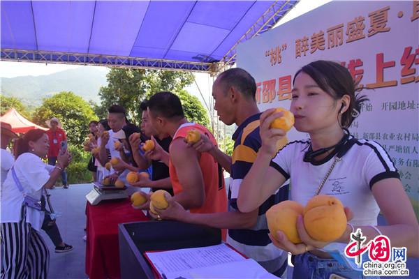 活動中,還開展了 “最大桃王”“最甜桃后”評比和吃黃桃比賽,將現(xiàn)場氣氛推向了高潮。活動最后,還開啟了2022年新邵縣“新邵資味”農(nóng)特產(chǎn)品短視頻暨直播大賽。