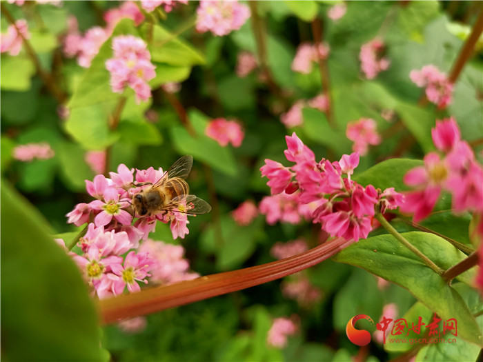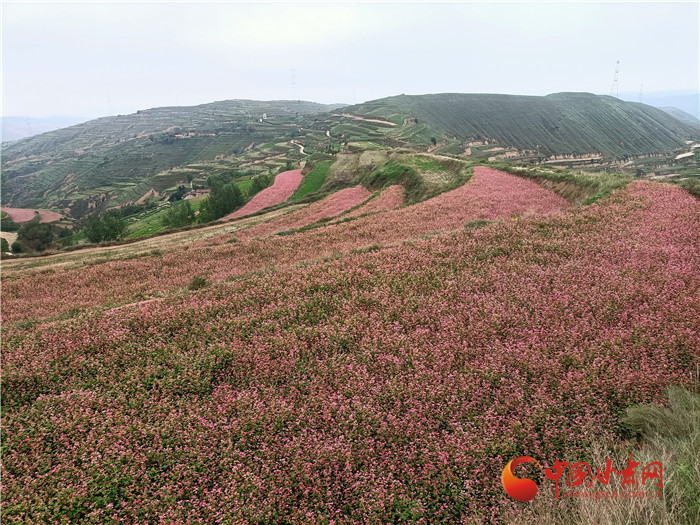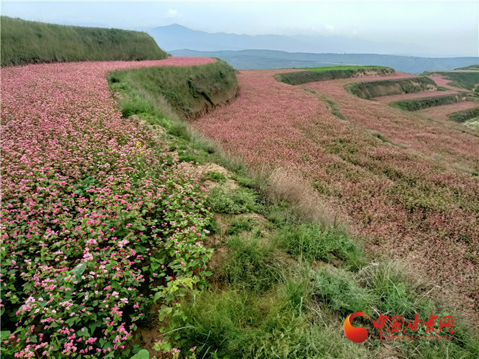 秋色漸濃,位于榆中縣甘草店鎮(zhèn)郭家灣村的蕎麥花兒開(kāi)的正艷。