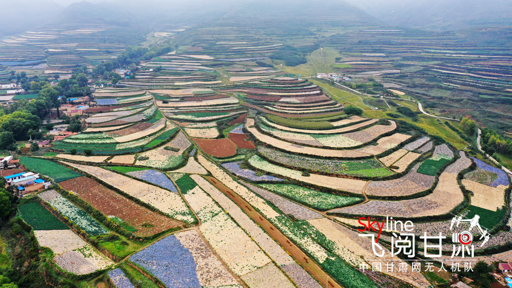 【豐收甘肅】蘭州榆中:七彩梯田話豐年 大地變身調(diào)色盤