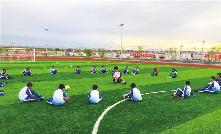 足球教練指導(dǎo)古浪縣富民新村小學球員。