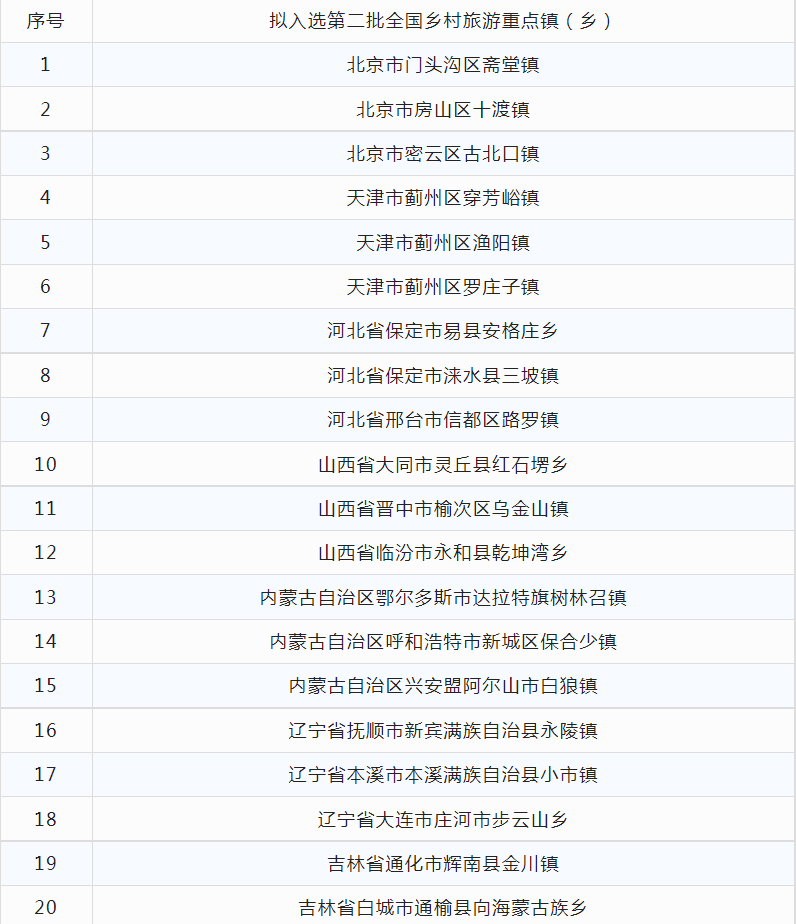 第二批全國鄉(xiāng)村旅游重點鎮(zhèn)(鄉(xiāng))名單