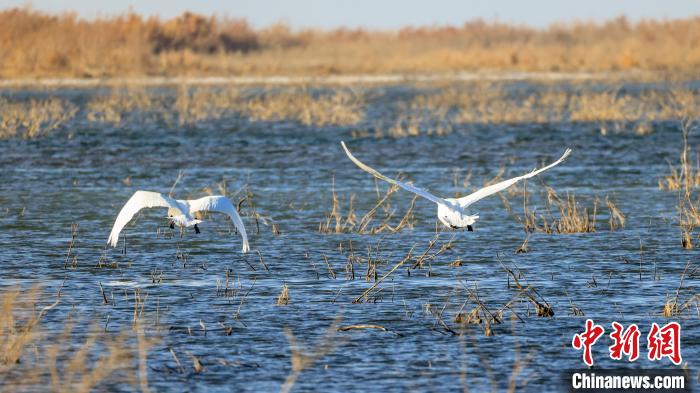 博湖縣境內(nèi)的博斯騰湖白鷺洲迎來大批天鵝?!∧昀?nbsp;攝