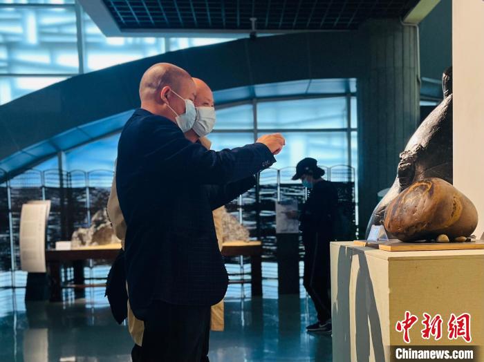 圖為一位參觀者用手機(jī)拍攝奇石。李嬌陽 攝