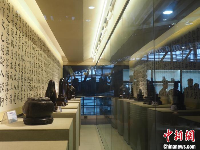 圖為參觀者隔著玻璃展柜觀賞奇石。李嬌陽 攝