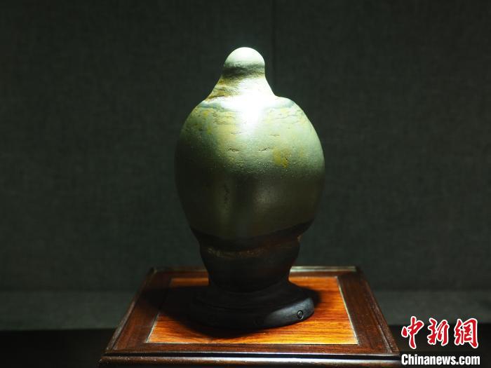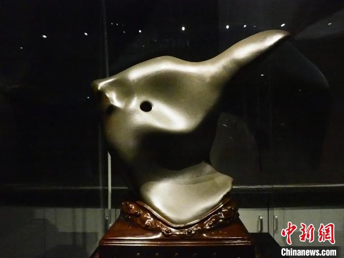 圖為現(xiàn)場的一塊奇石展品形如瓷瓶。李嬌陽 攝