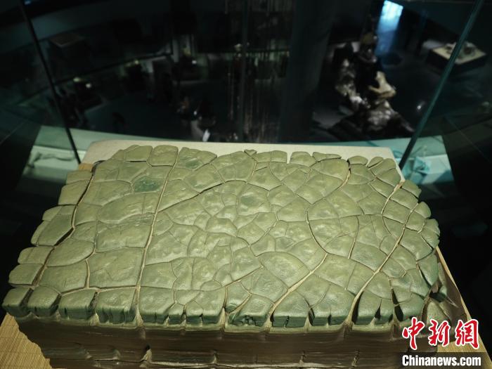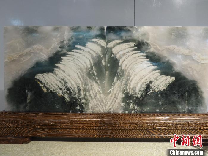圖為現(xiàn)場展出的一塊奇石宛如碧綠的田地。李嬌陽 攝