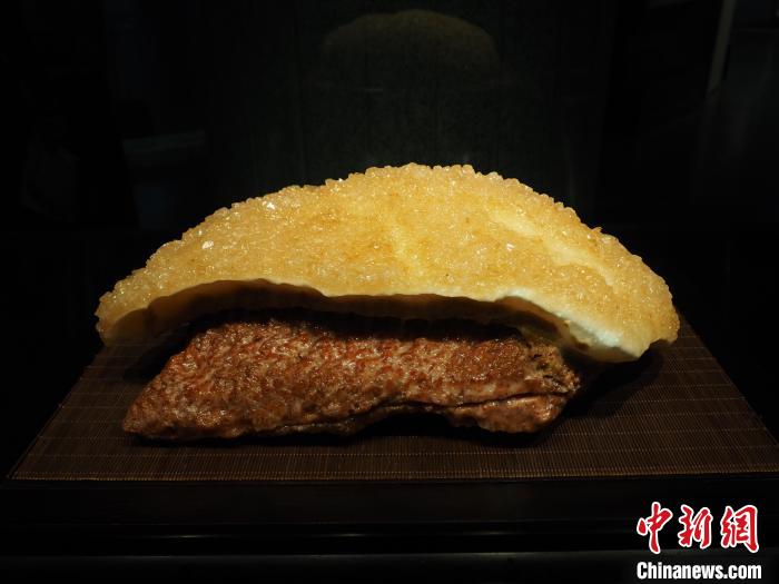 圖為現(xiàn)場的一塊奇石展品形貌如同泛著油光的豬肉。李嬌陽 攝