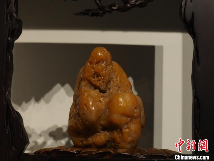 圖為現(xiàn)場展出的一塊奇石形似和尚。李嬌陽 攝