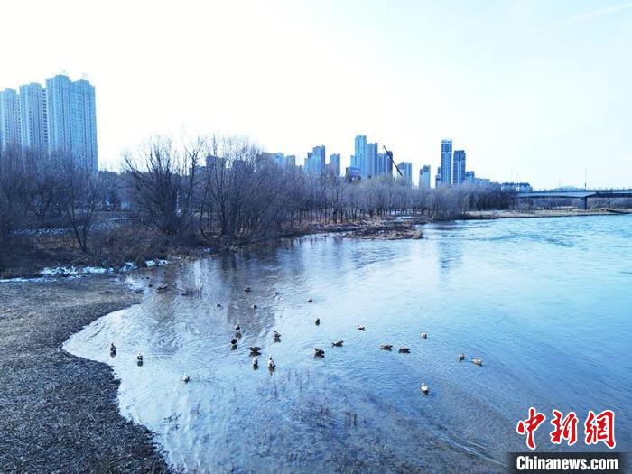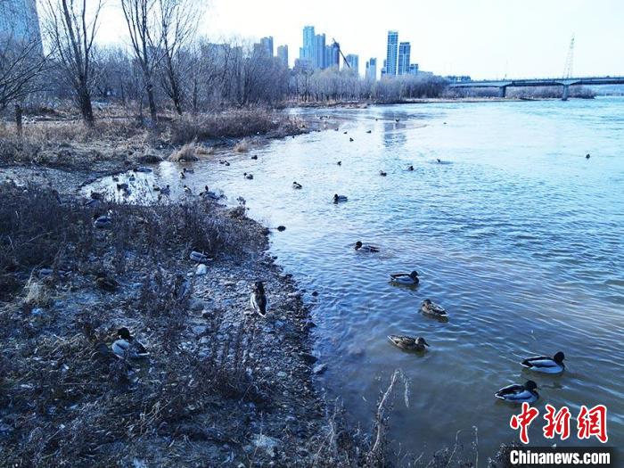 11月22日,小雪時(shí)節(jié)。在吉林市長(zhǎng)白島沿岸,千余只南遷候鳥在此筑巢安家。長(zhǎng)年不凍的松花江流經(jīng)吉林市,位于城區(qū)的長(zhǎng)白島每逢冬季都會(huì)迎來綠頭鴨、赤麻鴨、秋沙鴨等南遷水鳥,它們?cè)趰u上悠然自得、嬉鬧過冬。