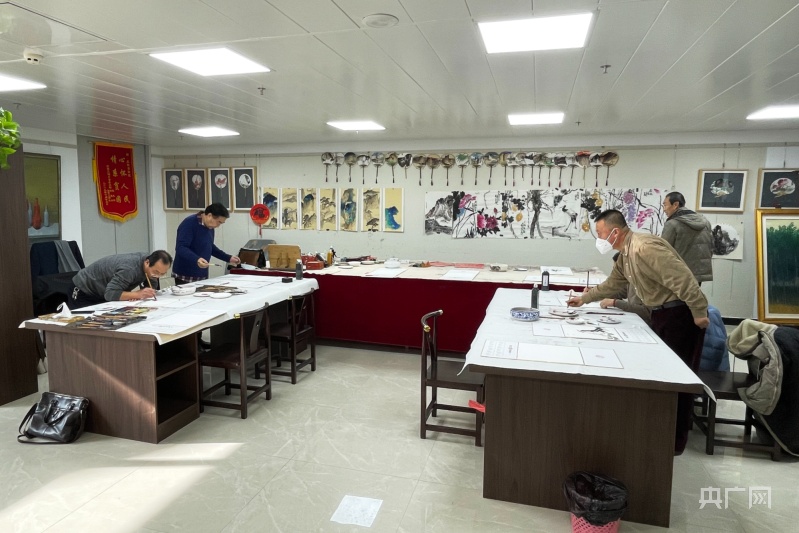 市民在美術館內(nèi)進行書畫創(chuàng)作(央廣網(wǎng)發(fā) 慶陽市委宣傳部 供圖)