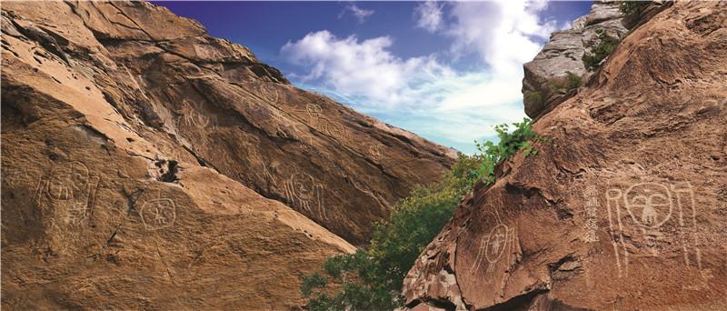 寧夏巖畫以賀蘭山巖畫為代表,鑿刻年代從石器時代到歷史發(fā)展的各個階段,延續(xù)時間長,體現(xiàn)了古人與石的對話,被譽(yù)為“史前人類的藝術(shù)長廊”“刻在石頭上的史詩”。寧夏巖畫為中國北方巖畫的代表,約有4萬余幅,廣泛分布于賀蘭山東麓和衛(wèi)寧北山、香山、青銅峽牛首山,記錄了遠(yuǎn)古先民狩獵、耕作、放牧、祭祀、圖騰等生產(chǎn)生活場景。北魏地理學(xué)家酈道元對賀蘭山巖畫描述“石之上自然有紋,盡若虎馬之狀,粲然成著,類似圖焉,故亦謂之畫石山也。”寧夏巖畫是多彩的畫,是無聲的歌,是無韻的詩,是形象的史,承載著古代賀蘭山區(qū)多民族交往交流交融的集體記憶,是各民族從“各美其美、美美與共”到“多元一體、休戚與共”的中華民族共同體意識的原始物證?,F(xiàn)為國家4A級旅游景區(qū)。