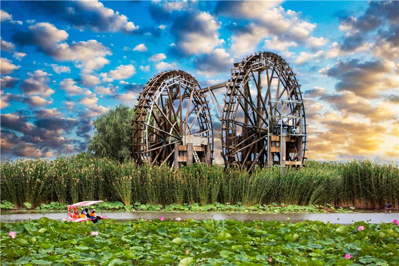 銀川市濕地(包含河流水域)面積531平方公里(80萬畝),占市域土地總面積7.65%,人均濕地面236平方米,是全國的6倍,市區(qū)濕地率達(dá)到10.65%,濕地保護(hù)率達(dá)到78.5%,2018年被評為我國首批“國際濕地城市”。鳴翠湖位于興慶區(qū)掌政鎮(zhèn),總規(guī)劃面積8840畝,是歷史上銀川“七十二連湖”重要組成部分,是中國西部地區(qū)和黃河流域首家國家濕地公園、“國內(nèi)首個立體生態(tài)荒漠化濕地成功修復(fù)力作”、國家水利風(fēng)景區(qū)、國家4A級旅游景區(qū),享有“中國最美濕地公園”“中國生態(tài)保護(hù)最佳濕地”等美譽(yù)。銀青公路穿湖而過,將其分為南北兩湖,其中:南湖為濕地生態(tài)保護(hù)核心區(qū)占地3845畝,只進(jìn)行濕地保護(hù)與恢復(fù)性建設(shè);北湖占地4995畝,進(jìn)行濕地景觀建設(shè)和濕地生態(tài)旅游項(xiàng)目的開發(fā)經(jīng)營。鳴翠湖湖泊面積占湖區(qū)面積的80%,景區(qū)生物多樣性富集,有維管植物109種、水生浮游植物69種、鳥類97種。湖光瀲滟、蘆葦蕩漾、楊柳依依、水車吱吱、魚翔淺底、百鳥鳴翠,遠(yuǎn)望水鷺雙飛起,近看風(fēng)荷一向翻;接天蓮葉無窮碧,映日荷花別樣紅,在我國西北干旱地區(qū)和黃河沖積平原區(qū)域具有典型性和代表性。