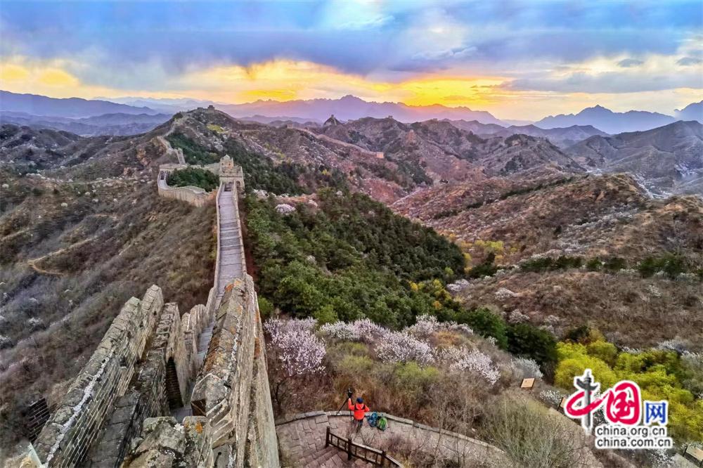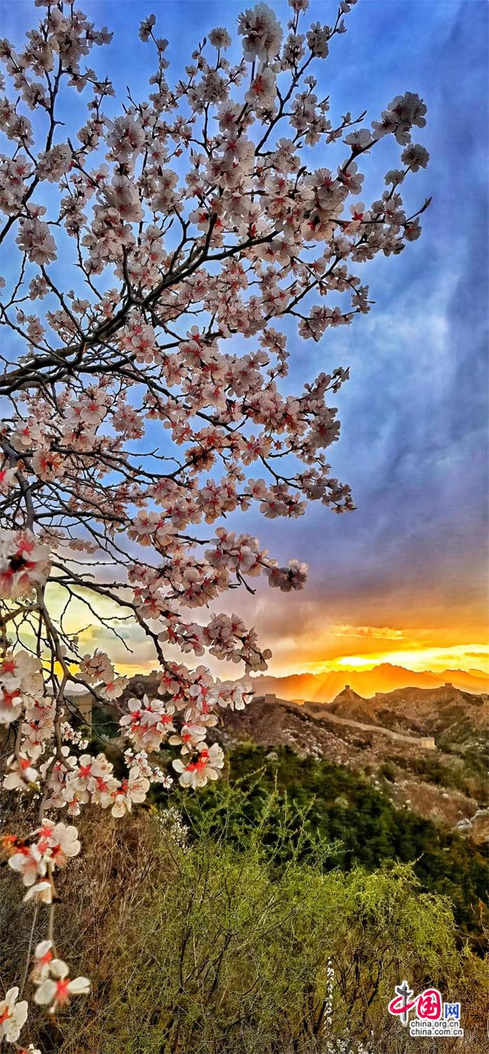 資料圖:當長城遇上杏花。 張愛東 攝 圖片和作品內(nèi)容無關(guān)