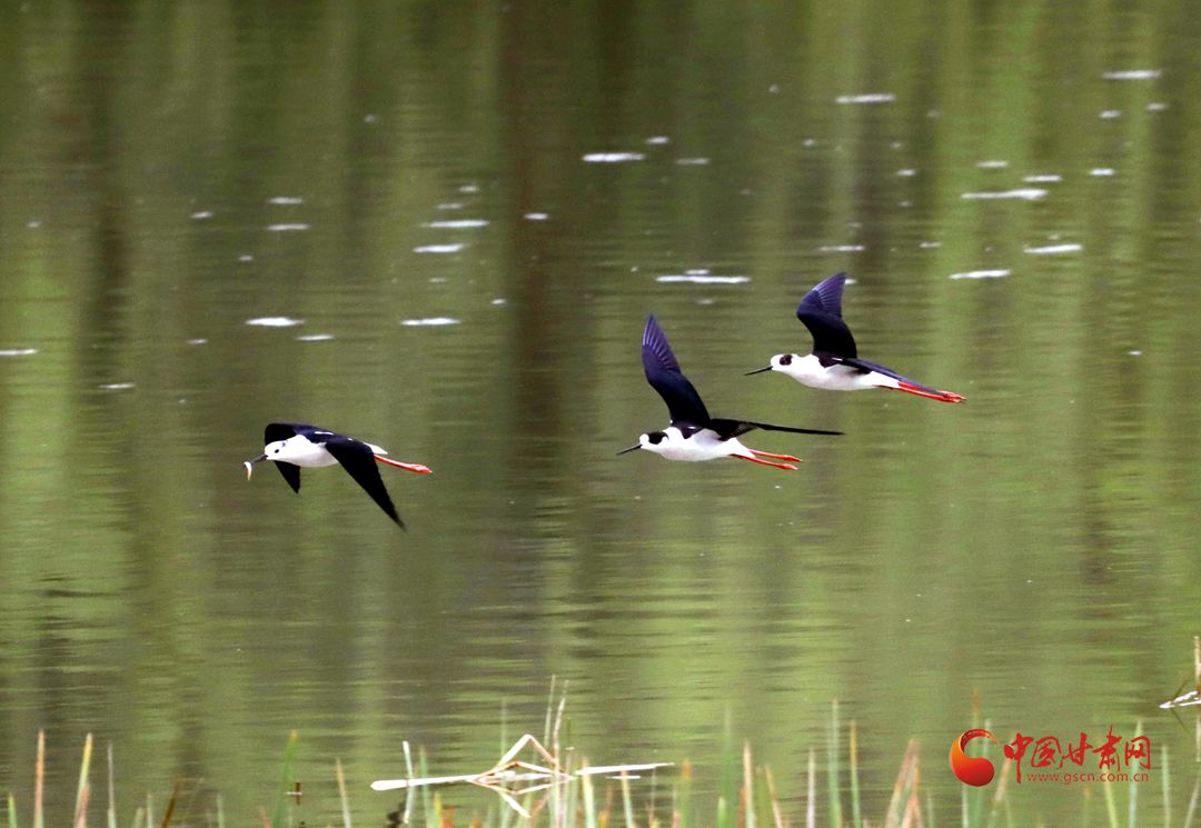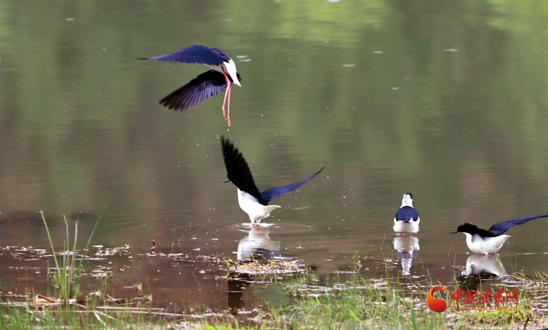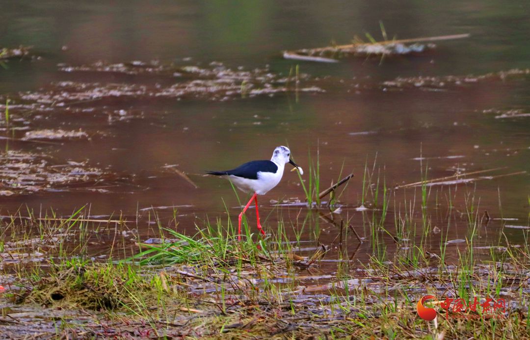 【隴拍客】崇信:“鳥中模特”黑翅長腳鷸來汭河度假