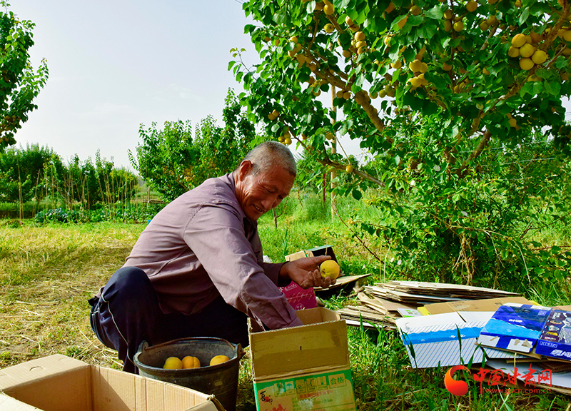 楊建國(guó)對(duì)采摘的大接杏進(jìn)行裝箱