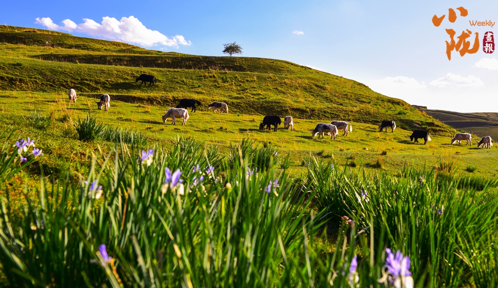 水草豐美、牛羊遍山,馬蓮花開出藍(lán)紫色花朵,給這一方水土染上了豐富的色彩。