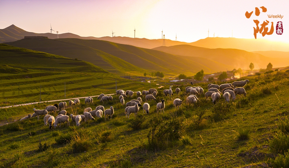 夕陽(yáng)西下,草原,房屋,羊群,山脈……融為一體,猶如一幅淡墨山水畫躍然紙上,熠熠生輝。