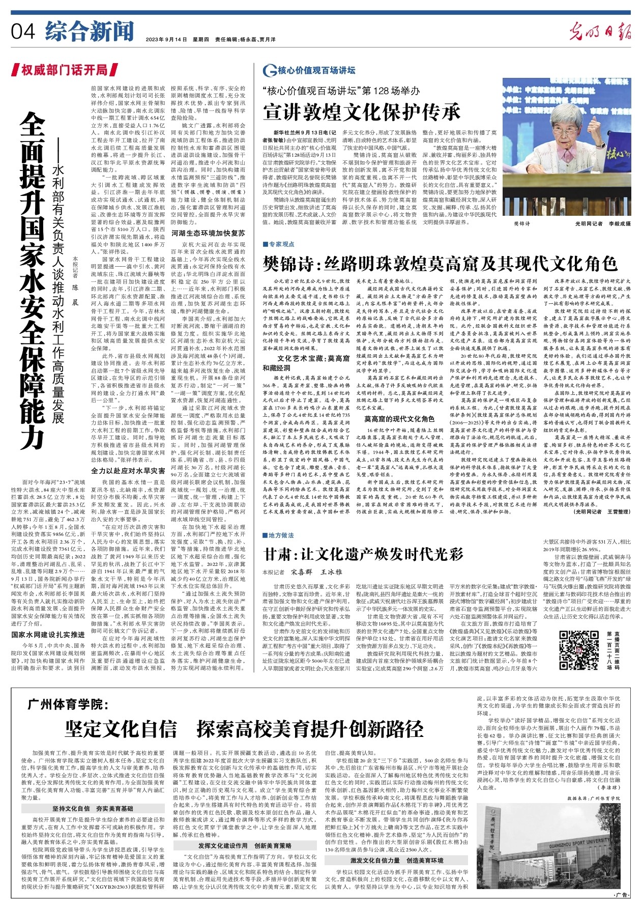 新華社蘭州9月13日電(記者 張智敏)由中宣部宣教局、光明日報社共同主辦的“核心價值觀百場講壇”第128場活動9月13日在甘肅敦煌研究院舉行。“文物保護杰出貢獻者”國家榮譽稱號獲得者、敦煌研究院名譽院長樊錦詩作題為《絲路明珠敦煌莫高窟及其現(xiàn)代文化角色》的演講。