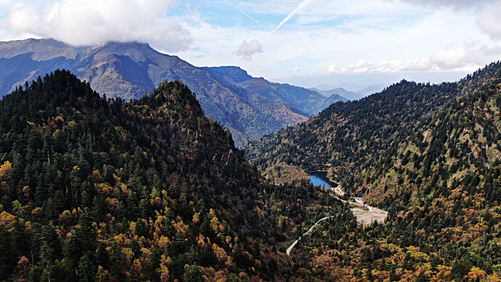 金秋時(shí)節(jié),甘肅省隴南市宕昌縣官鵝溝森林公園層林盡染,斑斕如畫,吸引了不少游客前來游玩。新華網(wǎng)發(fā)(劉輝 攝)