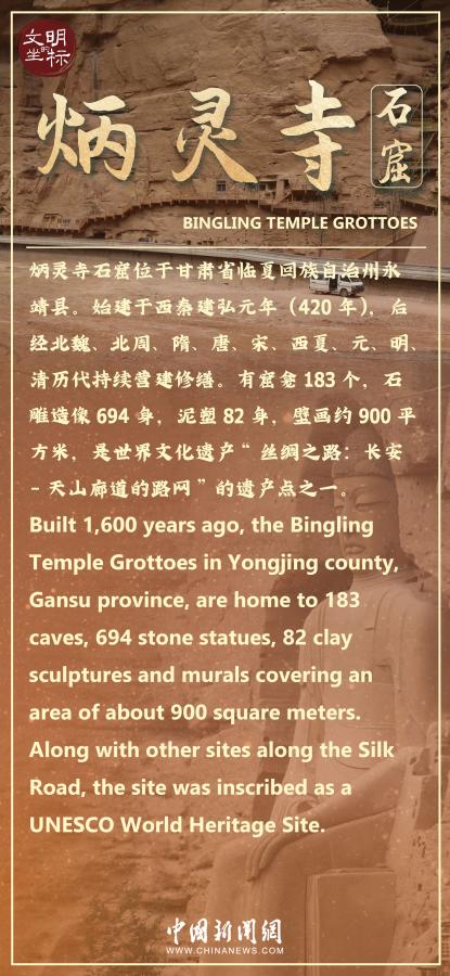 炳靈寺石窟位于甘肅省臨夏回族自治州永靖縣。歷史上,古絲綢之路南線和唐蕃古道在這里交匯,造就了璀璨的多元文化藝術(shù)瑰寶。炳靈寺石窟也是絲綢之路上的第一座黃河石窟,始建于西秦建弘元年(公元420年),距今已有1600多年的歷史。在南北長(zhǎng)約2000米的懸崖峭壁上,石窟神龕鱗次櫛比,保存有西秦以來(lái)多個(gè)歷史時(shí)期的壁畫和雕塑,被稱為“中國(guó)石窟的百科全書”。走近這座懸崖上的“湖畔石窟”,欣賞西秦石刻造像之剽悍雄健,北魏之秀骨清像、隋唐之飽滿瑰麗,感受其沉淀的千年文化。