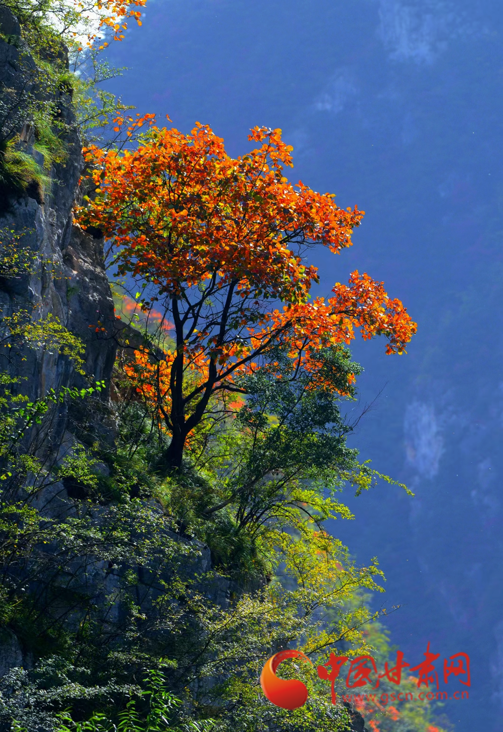 進入十月,康縣的秋景漸入佳境,秋日的暖陽透過薄霧灑在五彩斑斕的山脊上,滿山層林盡染、渾然一體,好似一幅油彩畫。