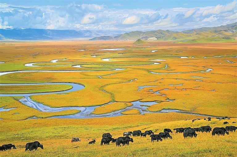 “天下黃河第一彎”“格薩爾發(fā)祥地”“中國賽馬之鄉(xiāng)”“世界最大最美的濕地草原”“藏族民歌彈唱故里”……這就是瑪曲,被譽為“中華水塔”和黃河的“蓄水池”?,斍卣Z譯為“黃河”,這里歷史文化悠久,旅游資源富集,擁有廣袤的草原、俊秀的濕地。近年來,呈現(xiàn)蓬勃發(fā)展之勢的文旅產(chǎn)業(yè),成為瑪曲縣深挖獨特資源稟賦、激活區(qū)域經(jīng)濟發(fā)展的一個縮影。